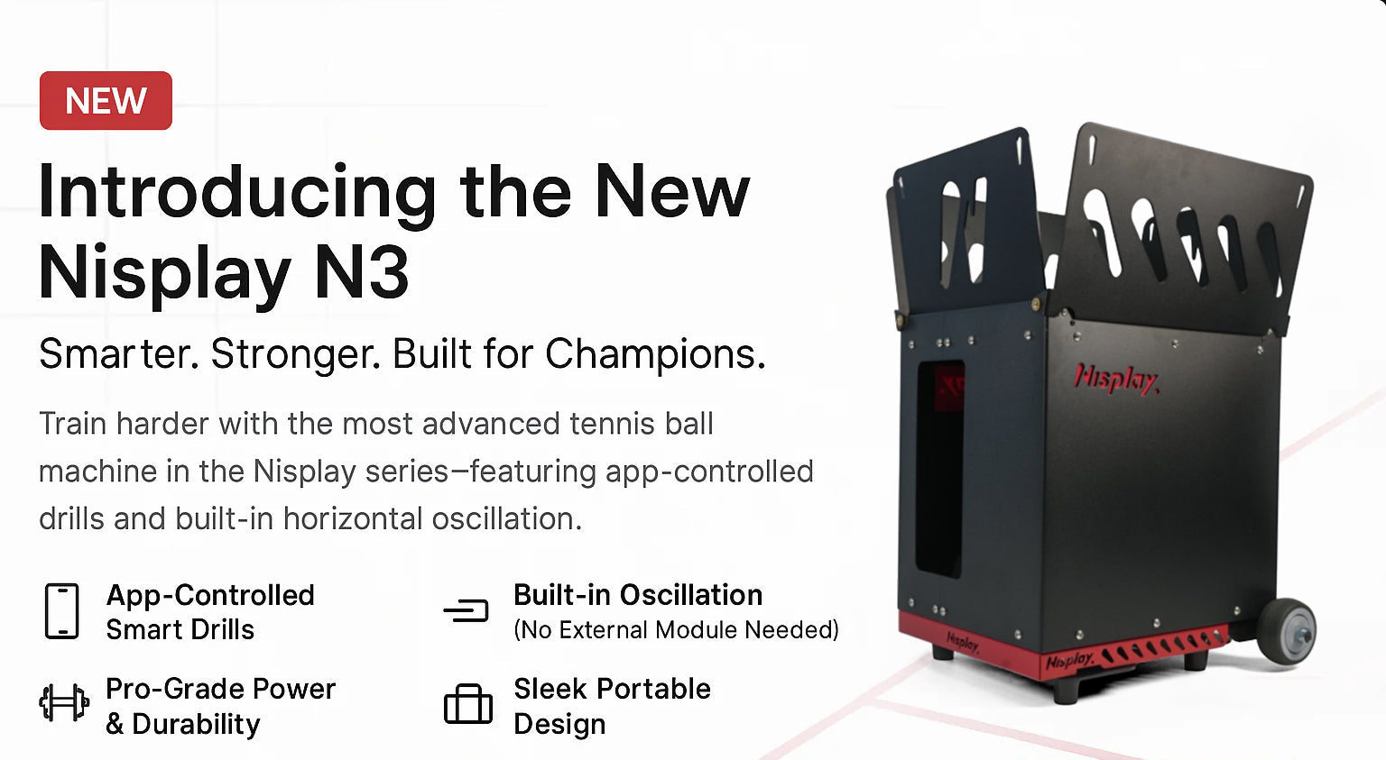 Nisplay N3 Tennis Ball Machine - Portable Tennis Ball Machine with App control and horizontal oscillation